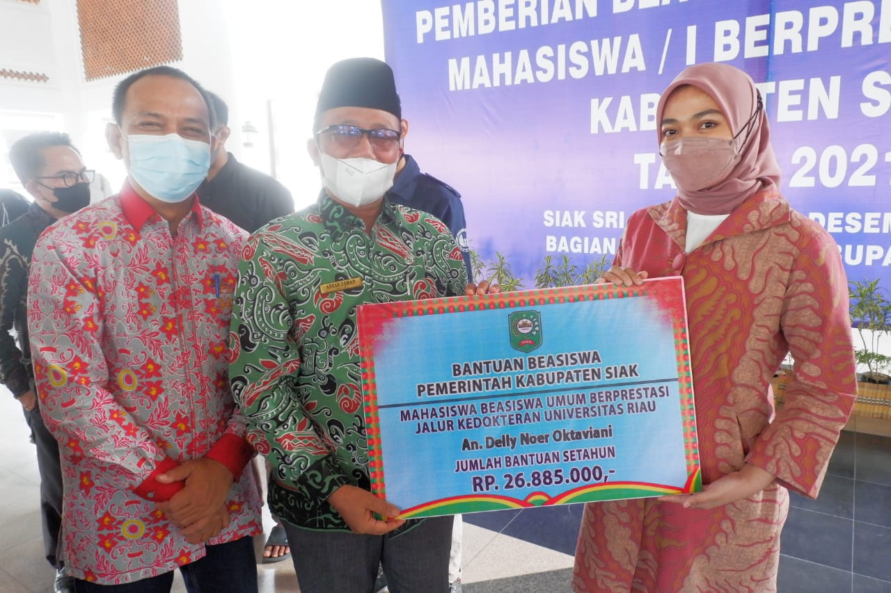 Program beasiswa mahasiswa berpestasi tersebut merupakan komitmen Pemerintah Kabupaten (Pemkab) Siak dalam mewujudkan Sumber Daya Manusia (SDM) masyarakat Kabupaten Siak yang berkualitas di masa mendatang.