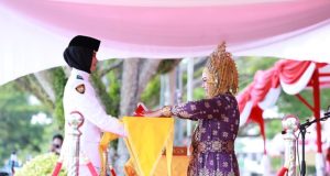 Bupati Siak Pimpin Upacara HUT RI Ke-80, Tampil Dengan Pakaian Adat...