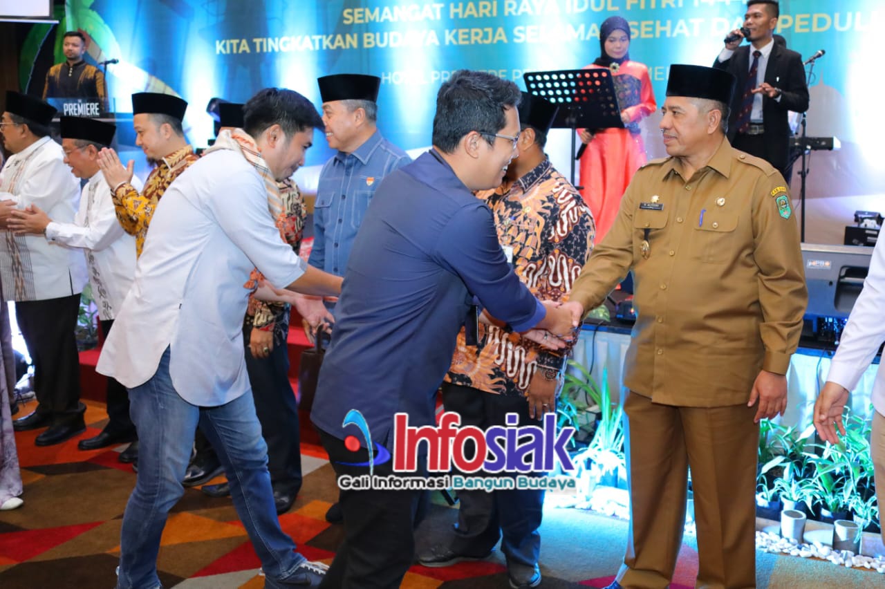 Dalam kesempatan ini, Bupati Siak Alfedri terlebih dulu mengucapkan Minal Aidin Wal Faizin, mohon maaf lahir dan bathin.