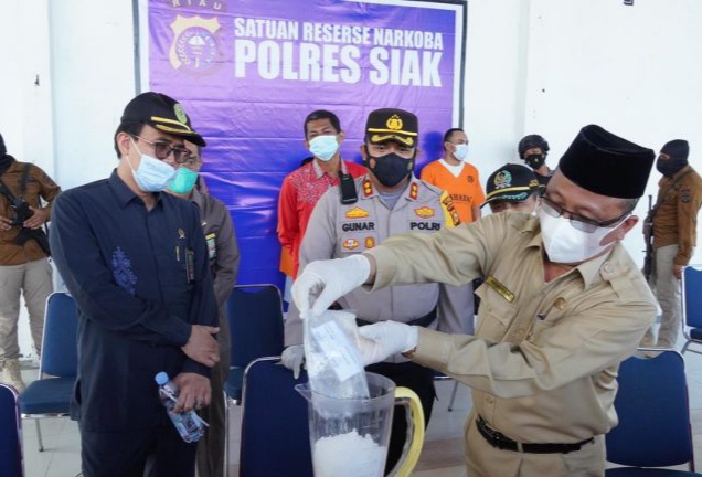 Sabu seberat 824,04 gram itu dimusnahkan oleh Sekda Siak Arfan Usman, dengan cara memblender sabu, kemudian dibuang di sungai Siak. Sedangkan ganja kering itu seberat 3.740,64 gram, dimusnahkan dengan cara dibakar.