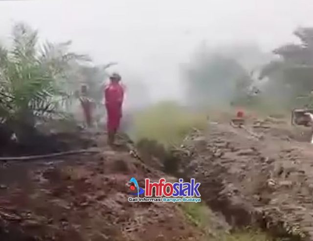 Berdasarkan informasi yang diterima Infosiak.com, lahan perkebunan sawit yang terbakar tersebut sebagian besar merupakan lahan gambut, sehingga api begitu cepat menjalar ke kanan dan ke kiri, ditambah lagi dalam beberapa hari ini cuaca cukup panas (extrem, red).
