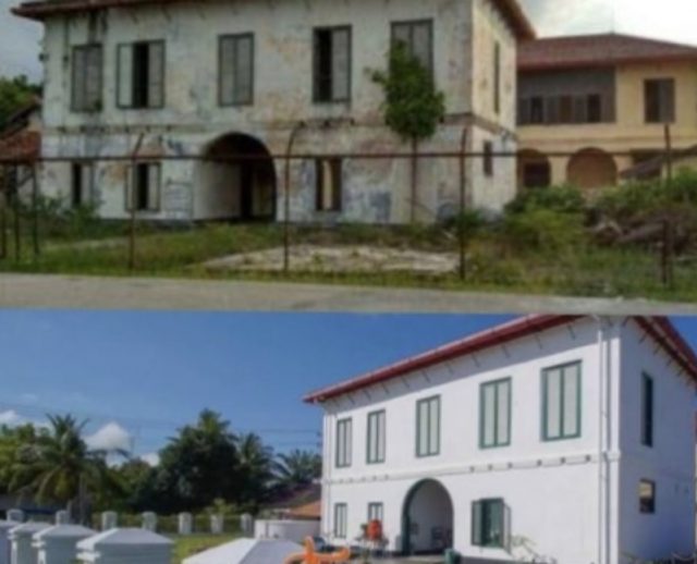 Salah satu ruangan di lantai dua bangunan Tangsi Belanda di Kecamatan Mempura ambruk, pada Sabtu (31/1/2026).