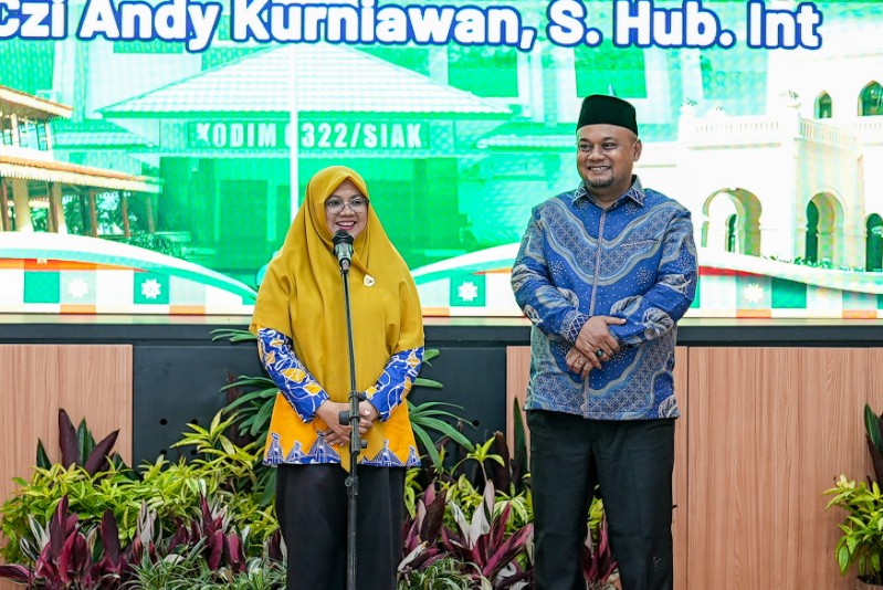 Bupati Afni juga mengucapkan selamat datang kepada Dandim 0322/Siak Letkol Czi Andy Kurniawan, S. Hub. Int, di Kabupaten Siak.
