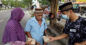 Pandemi Covid-19, YouTubers Perawang Berbagi Nasi Bungkus Kepada Warga Kurang Mampu